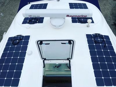 “We are very excited to have been able to fit 400w of solar on our new boat! This is our second installation using Chris’ panels as we sold our boat that had a beautiful 400w solar system installation! Can’t wait to try out the new panels this summer!!!"